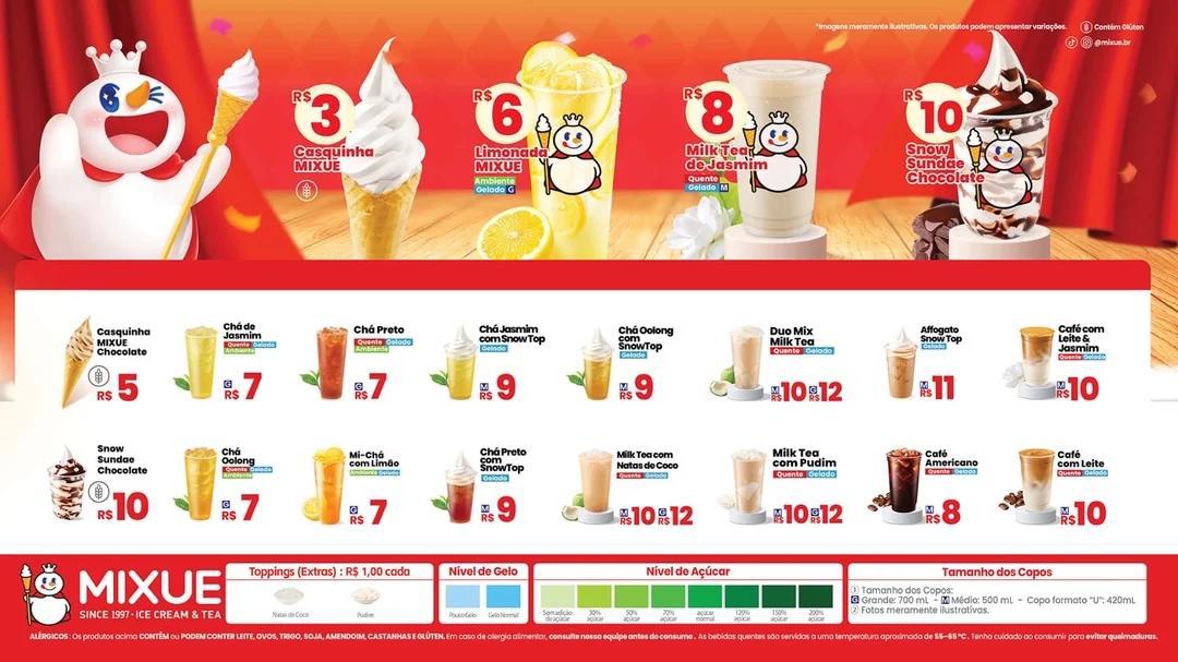 当地民众向记者展示的图片显示,“巴西版”蜜雪冰城有柠檬水、棒打鲜橙、圣代、冰激凌等饮品,设有0糖-200%糖度,其中柠檬水6巴西雷亚尔(约合8元人民币)一杯。