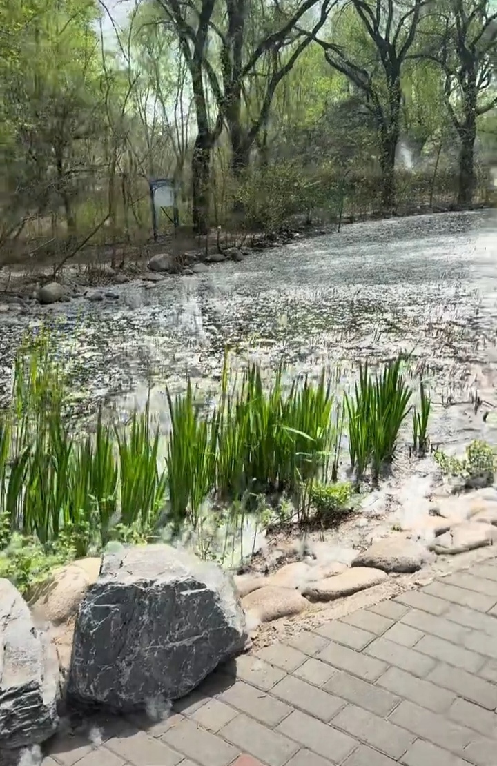 另据北京野生动物园公众号信息,园区专门安排了高压喷水车,每日定时对杨柳树冠进行循环冲刷,及时冲掉未开裂的花序,从源头减少飞絮产生;保洁工作人员加大巡查与清扫频次,对步道、休息区、场馆周边等游客密集区域的飞絮进行及时清理,尽可能减少飞絮在空中的扩散。