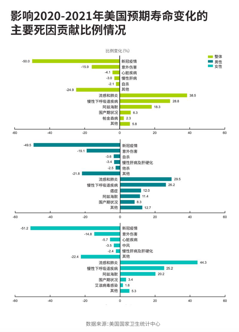 新冠疫情导致的死亡,是美国人均预期寿命下降的第一大原因。