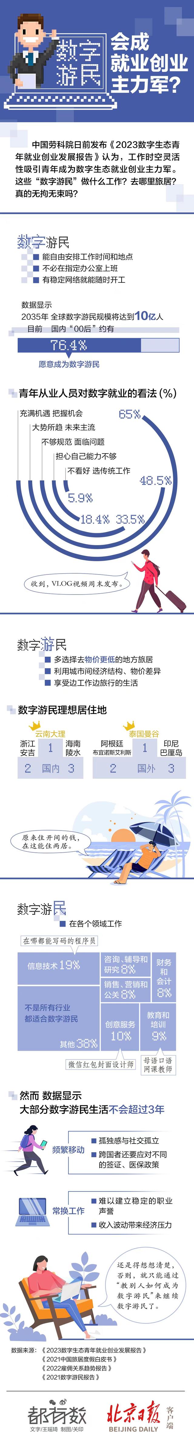 中国劳科院日前发布《2023数字生态青年就业创业发展报告》认为,工作时空灵活性吸引青年成为数字生态就业创业主力军。