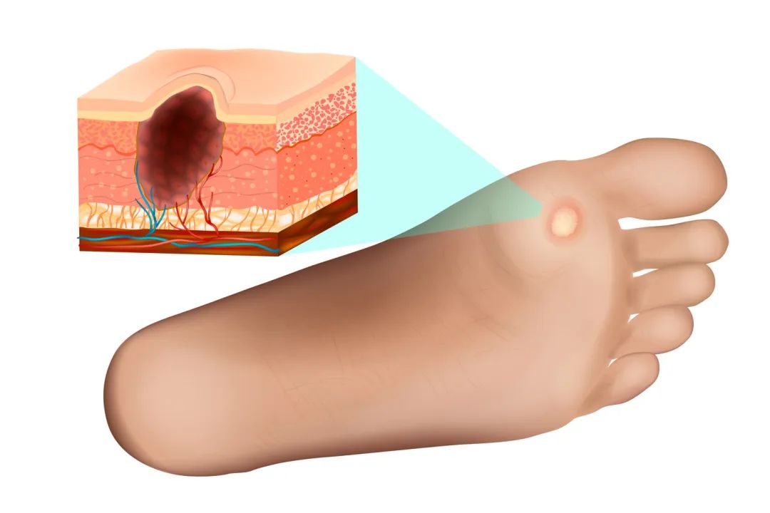 跖疣是生于足底的寻常疣,由HPV感染引起,患病率为7%-12%,可通过皮肤的微小破损自身接种传染,往往发生在那些喜欢赤脚、足部多汗的人群,以儿童及青少年居多。