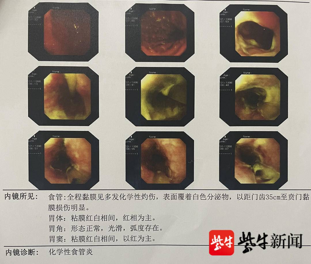 任主任解释,管道疏通剂作为腐蚀性物品,对人体造成的损伤主要分为两个部分,一是局部伤害:主要是对口腔、消化道粘膜、呼吸道的灼伤,该患者由于误服的量比较大,后期又喝水加重了病情,对消化道深层平滑肌造成了损伤,日后可能形成疤痕,造成食管狭窄。