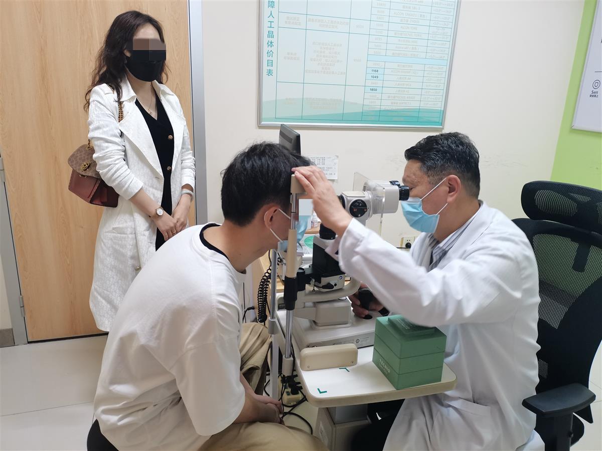 叶应嘉院长为吕同学做裂隙灯检查 (图片由汉阳爱尔眼科医院提供)