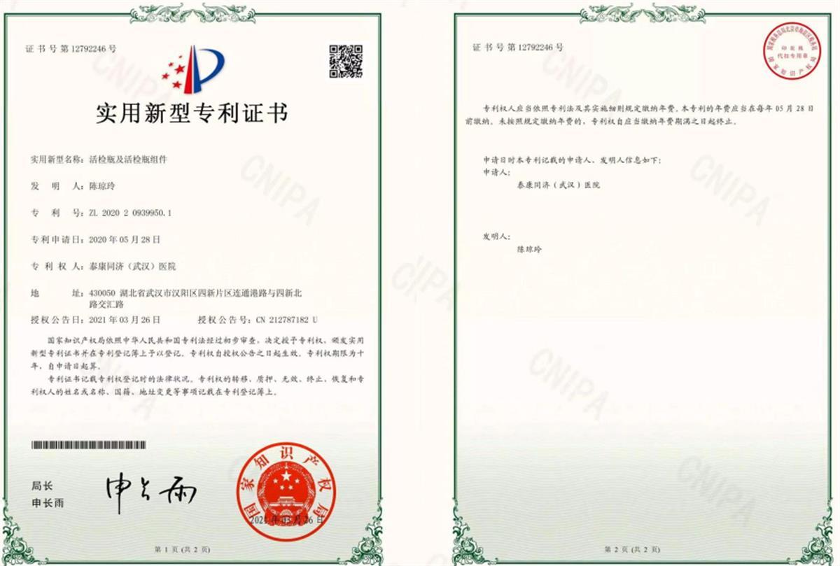 日常工作中善于观察,就可能促成一个小小的发明,帮助同事每天节省1小时工作时间。由泰康同济内镜中心护士长陈琼玲发明的“活检瓶及活检瓶组件”不仅获得了专利,还签约完成了专利成果转化 。日前,泰康同济(武汉)医院与武汉伍源生物科技有限公司签署相关专利实施许可协议。