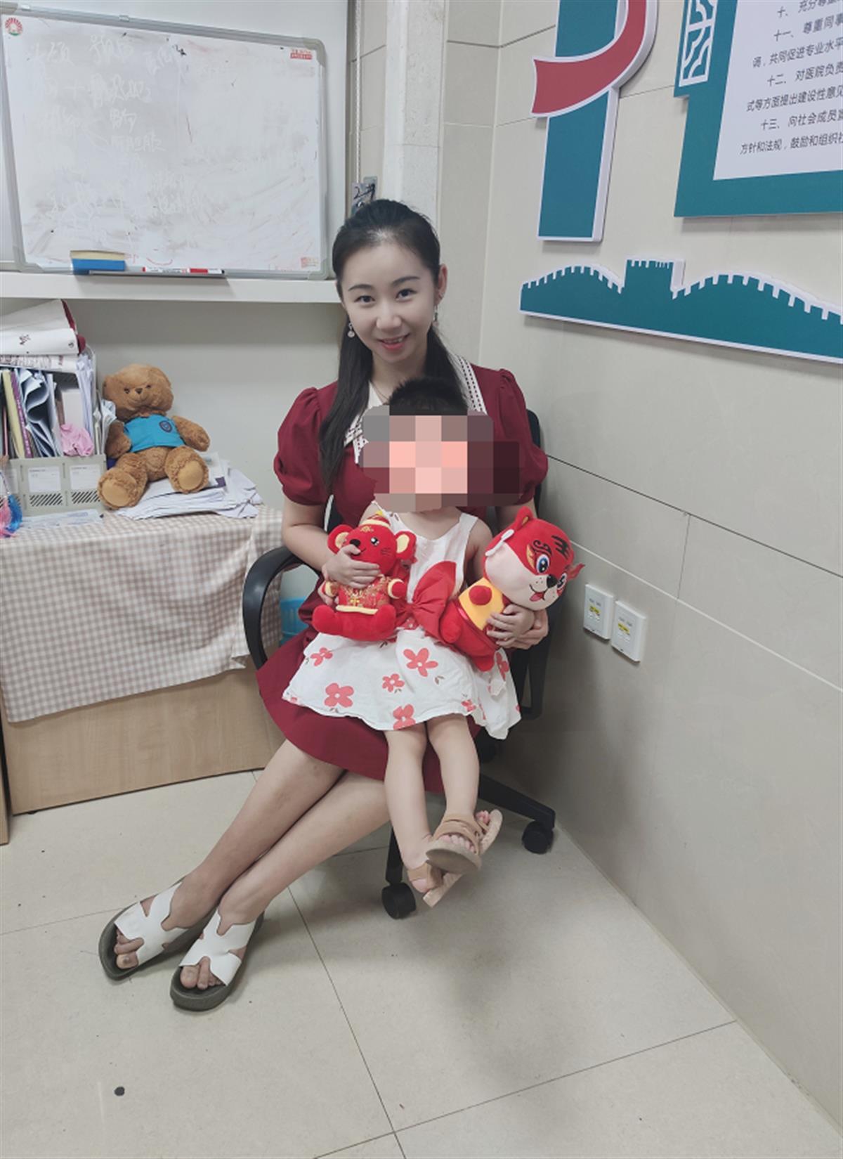 9月5日,湖北省肿瘤医院职工贺霄来到癌症患者周女士家里,刚一进门,周女士2岁半的女儿茜茜(化名)便扑上去,乖巧地叫了一声:“贺妈妈!”原来,当天是周女士第三次入院化疗的日子,也是贺霄第三次接茜茜回自己家的日子。