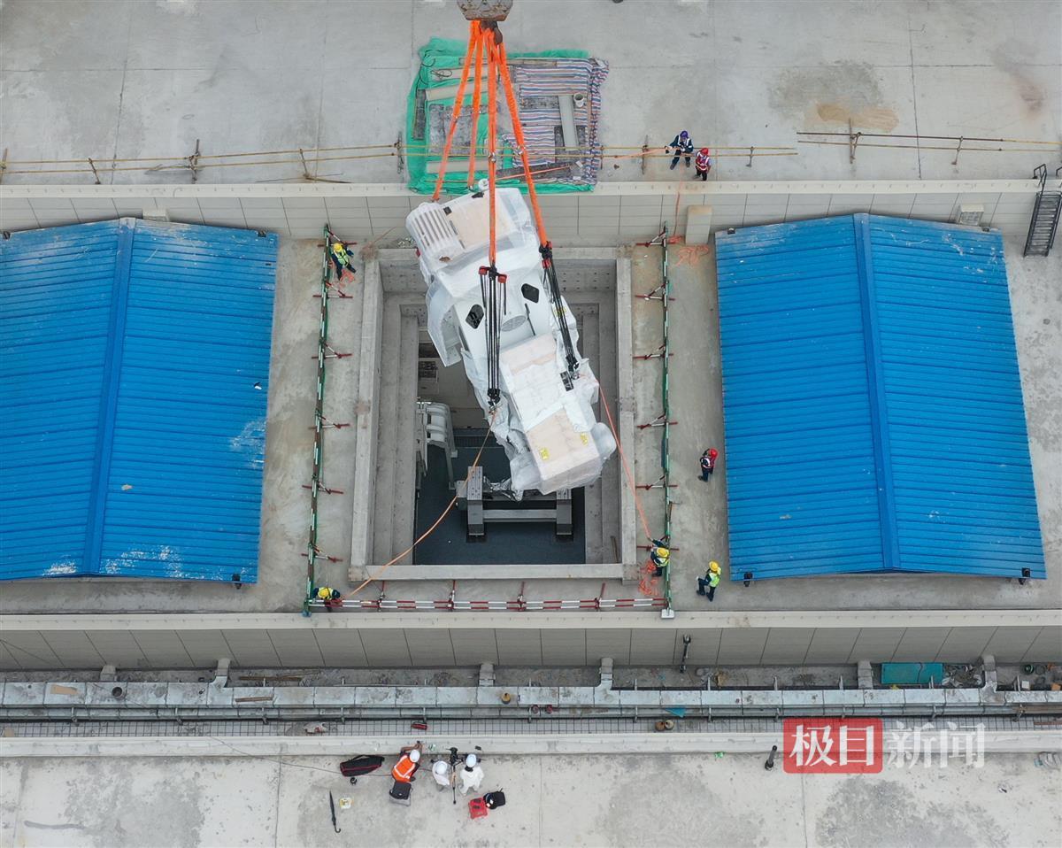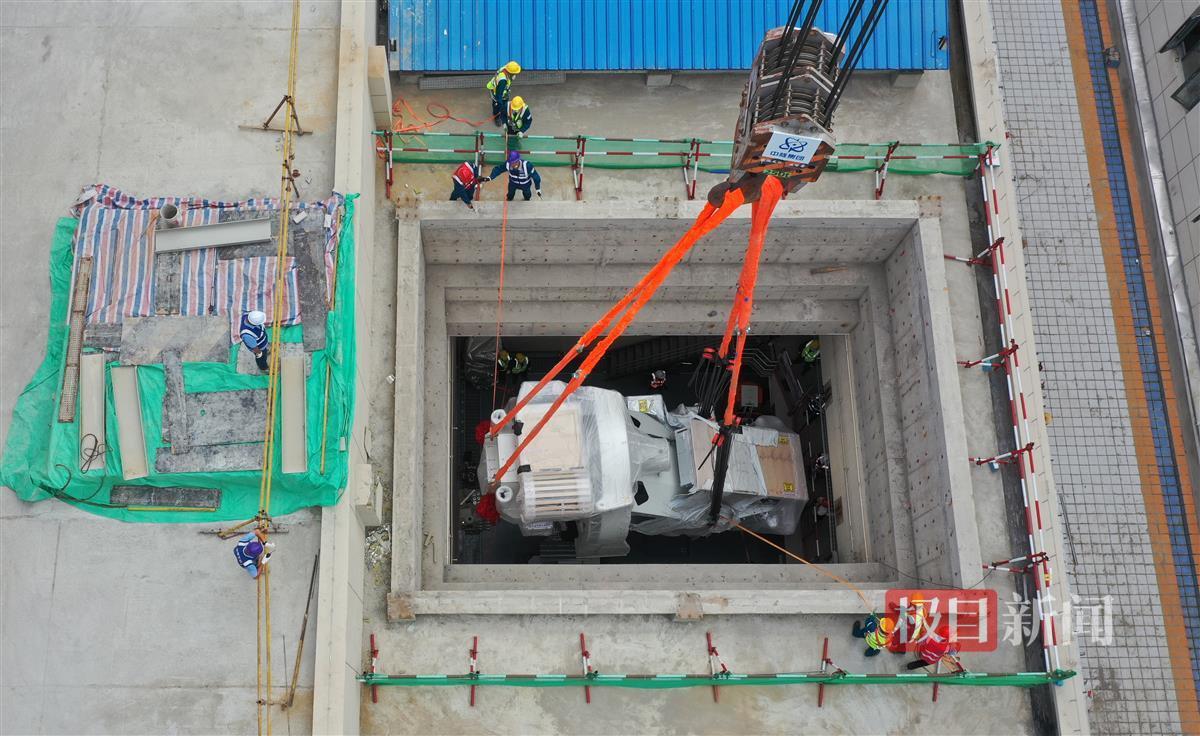 谢睿介绍,为了配合基坑内底座的角度,这个大家伙在空中有个“转体”动作,需倾斜90度下降,这样才能和预留在基坑内的底座平行吻合,精准对接,“仅调整这个角度,我们在预演时就花了2个多小时,以确保万无一失。”谢睿感慨,不仅如此,为了不影响建筑施工,团队另辟蹊径,在房顶预留“入口”,让巨无霸设备完成安装,这样施工、安装两不误。