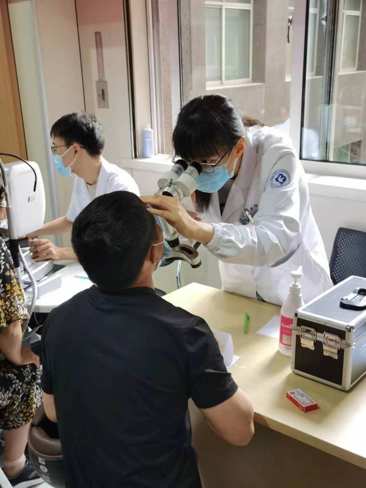 “我们根据糖尿病眼病的流行病学调查数据发现,患了糖尿病眼病但真正走进医院治疗的老百姓并不多,很多病人往往要等到中后期察觉到视力异常才来就诊,预后很差。”眼科党支部陈子和医生深入基层卫生院,每月都要跑一个社区或村卫生站点。为了让老人减少等待时间,享受“家门口”的服务,他凌晨五点就驱车前往,一个上午可以看上60多个村民。