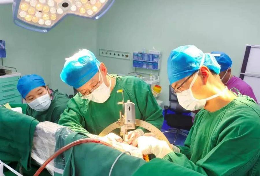 所以,手术第一步就是采用脑深部电刺激微创术,凭借精湛的技术,张建斌团队精准无误的将外科电极植入到患者的脑内预定合团。
