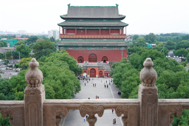 北京钟鼓楼始建于元至元九年(1272年),前后纵置于北京中轴线的北端。钟鼓楼里坐落着计时仪器、定更之鼓、报时之钟,凭借高大的建筑形体和特殊的扩音构造,计量和报送了六百多年标准的“北京时间”。“暮鼓晨钟”号令全城,充分展现了古人的智慧。