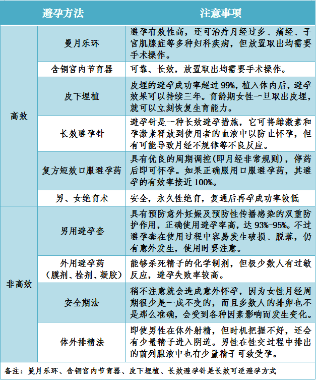 那么避孕措施究竟该如何选择呢?记者了解到,世界卫生组织WHO依据“使用第一年的妊娠率”将避孕方法分为:非常有效(高效)、有效(中效)、效果较差(低效)。