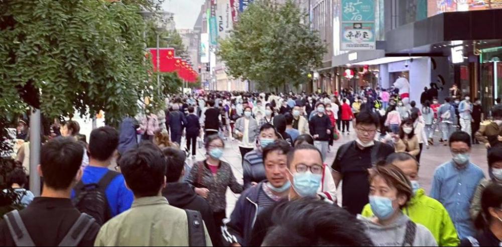 国庆期间上海南京东路街头热闹非凡。潘江涛摄