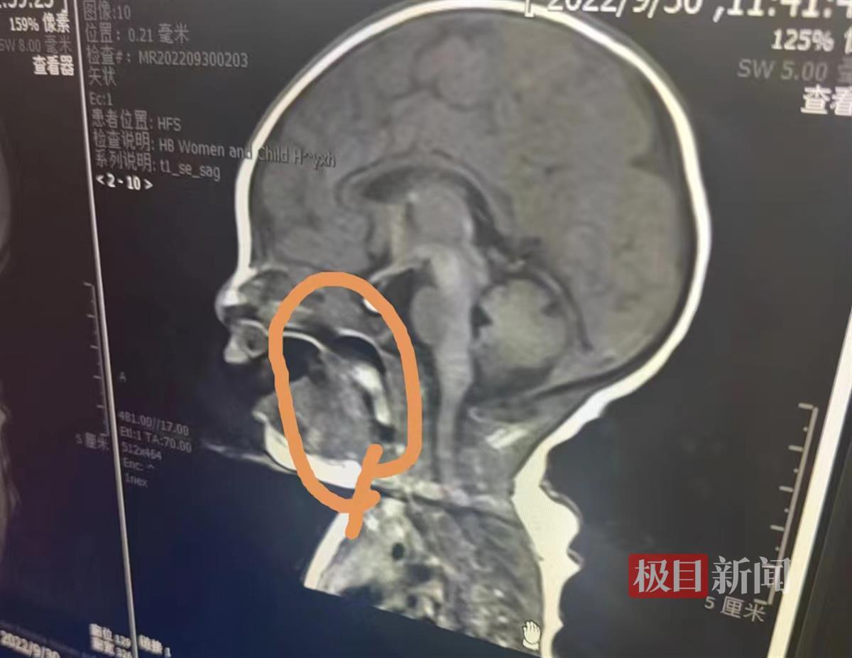 9月27日晚,伊伊在浠水县出生,一小时后,奶奶用小勺给她喂了点牛奶,没想到,牛奶全部从孩子口腔及鼻腔中溢了出来,而且孩子哭闹异常。当地医生检查发现伊伊喉咙处有一个新生物,导致她吞咽困难,建议家属尽快转诊至湖北省妇幼保健院。
