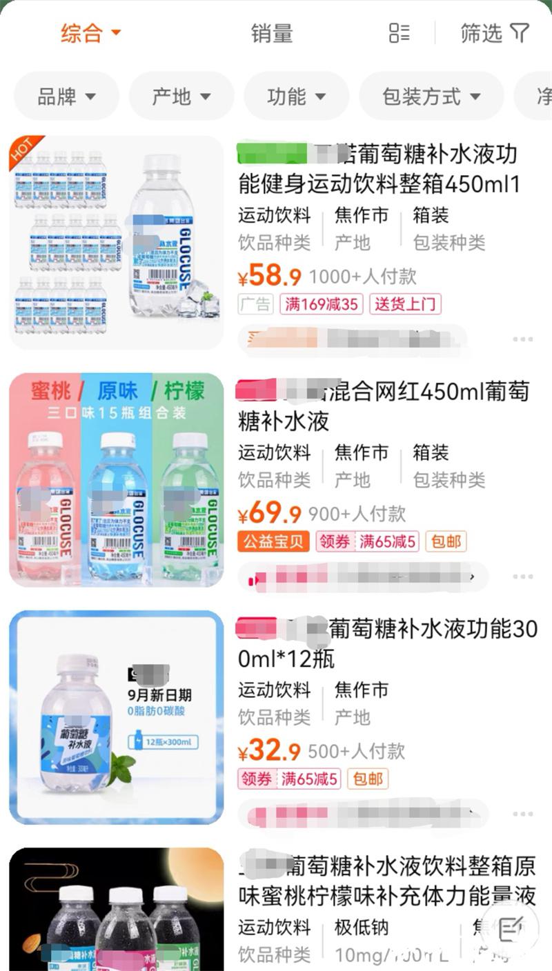 △电商平台上售卖的葡萄糖补水液