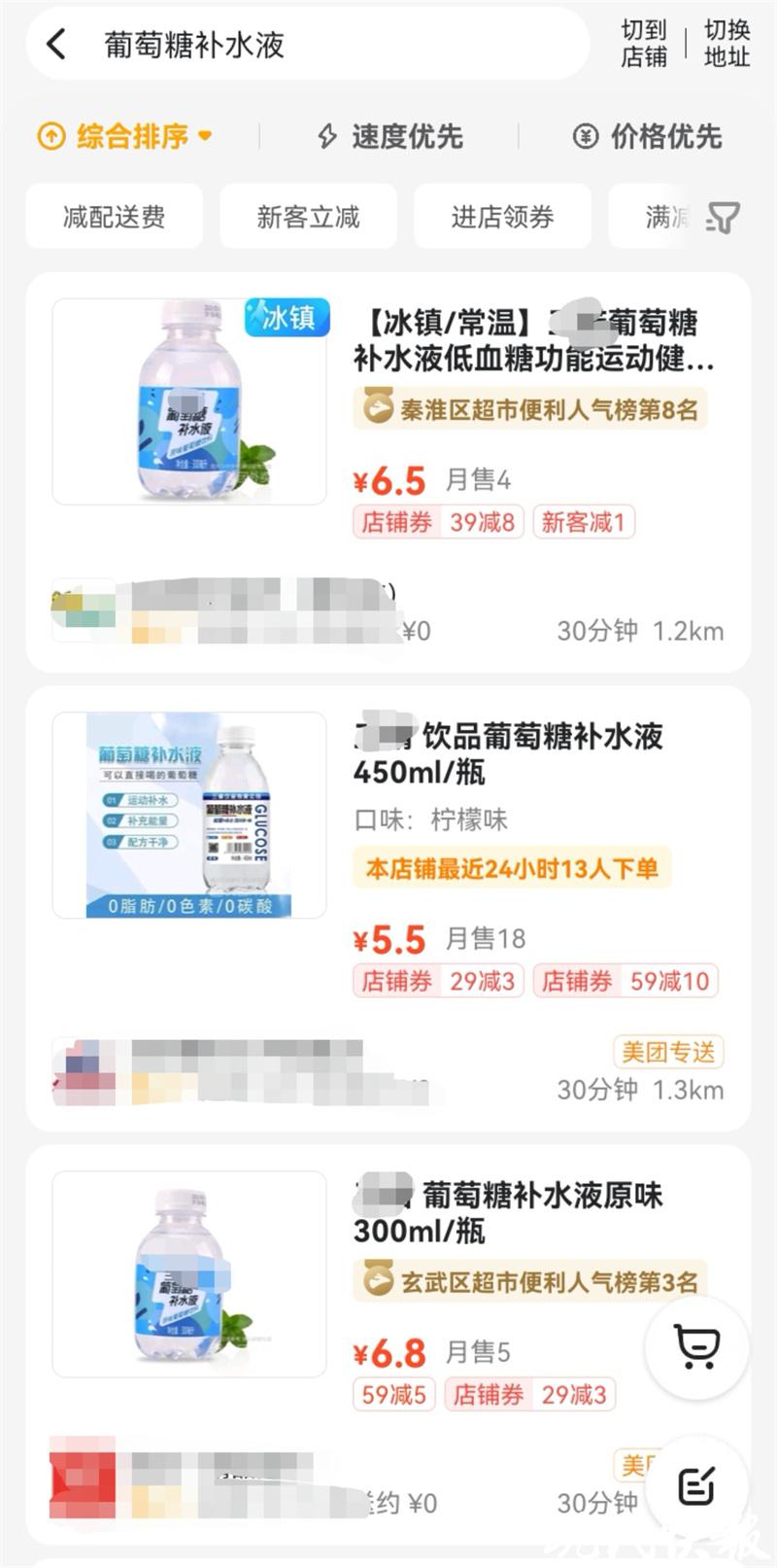 △外卖平台上显示附近超市可以购买的葡萄糖补水液