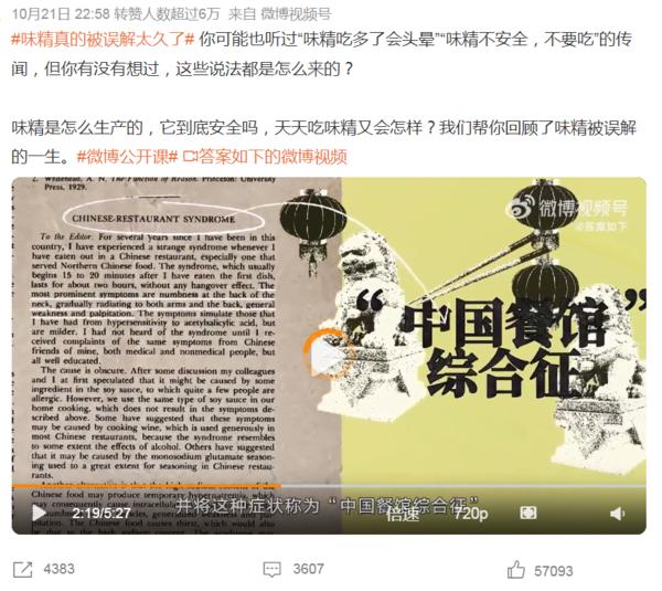 20世纪60年代末,一位署名“何文国”的“高级研究员”给《新英格兰医学期刊》发了一封短信,声称自己和周围的朋友在吃了中餐馆的食物后会经常身体麻木,并将这种症状称为“中国餐馆综合征”。当时味精更多用于东亚菜品,导致人们存在一个固有印象——中国餐馆做菜会放很多味精,这一事件引发了一系列学术界的研究。比如1969年科学杂志上刊登了一篇研究,证实味精正是导致头痛、灼烧感、胸痛等中餐馆综合征的原因。但这篇论文的实验方法有很多问题。同时还有另一篇针对味精的研究,并未发现正常摄入量和症状之间有任何直接的联系,但终究没能为味精正名,这是因为当时西方对味精的排斥基本上是一种种族主义偏见。