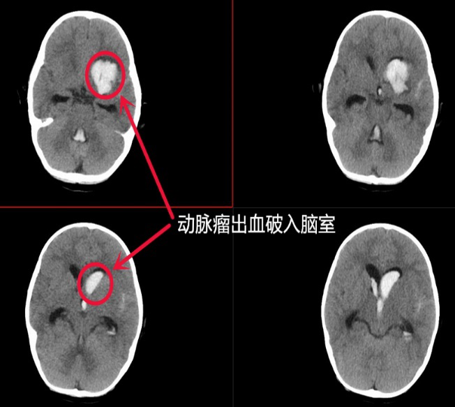 王广宇主任团队随即为萌萌安排了脑室外引流术,经过积极救治,萌萌的病情暂时稳定了下来,意识也逐渐清醒。但患儿脑内出血的原因尚不明确,王广宇主任分析,脑内出血最常见于脑动静脉畸形出血,但也不能排除动脉瘤出血或其他原因出血,必须进一步完善相关检查,明确出血根本原因,进一步从根本上治疗。王广宇主任团队随即为萌萌安排了颅脑CTA、MRA及脑血管造影等检查,结果不出所料,萌萌最终诊断为大脑中动脉动脉瘤。这一结果又是大家最不想看到的。