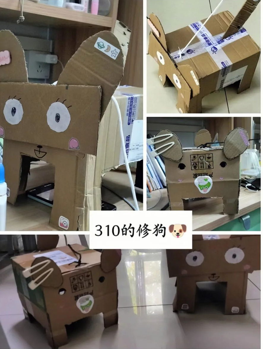 另一位重庆的大学生也在社交平台上分享了自己制作的纸箱小狗:“我觉得一方面很多大学生喜爱宠物,但是学校宿舍不能养。另一方面就是疫情当下,学生们想丰富大学生活,利用简单的物品,秀出能力。”