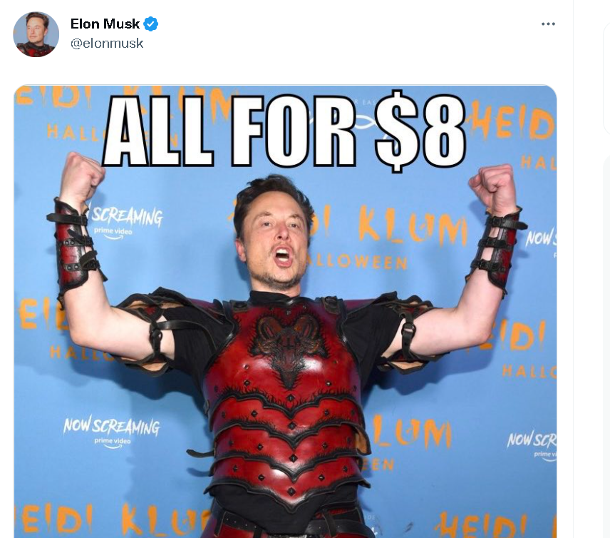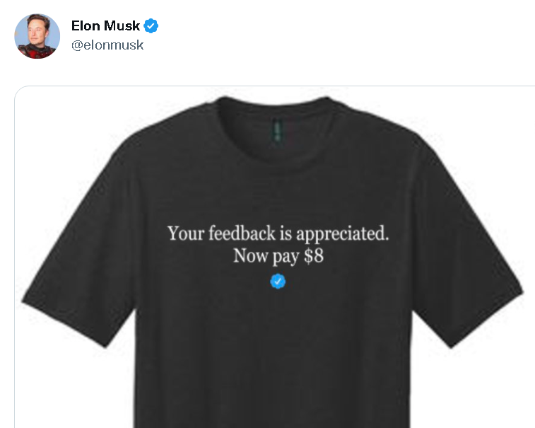 原来,为了给一直在赔本赚吆喝、负债累累的推特公司止损,马斯克在完成收购后,决定让推特平台将原本免费提供给名人、企业和机构组织的蓝标认证服务,改为1个月收费7.99美元,而且任何人只要支付7.99美元都可以获得这样一个蓝标认证。