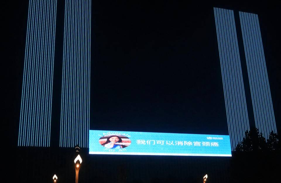 夜间点亮地标活动在济宁星河iCO、济南泉城广场、趵突泉等山东多处点亮象征着消灭宫颈癌的蓝绿色灯光,表达了“以一灯传诸灯,终至万灯皆明”的美好愿景。点亮地标,不只是对希望的点亮,更是对社会力量参与宫颈癌防治的动员。