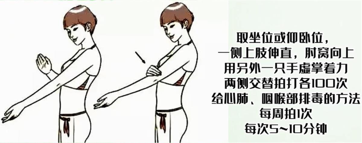 这就是给心肺、咽喉部排毒的方法。每周拍1次,每次5~10分钟。