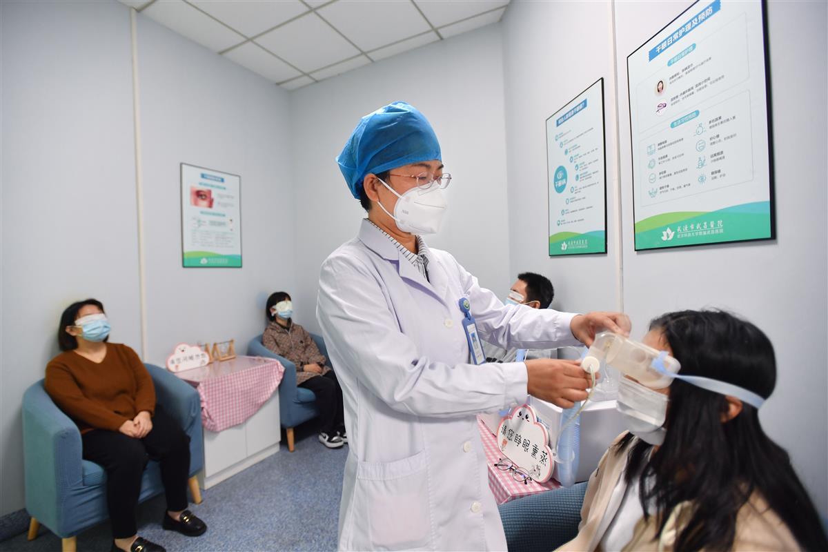 武汉市武昌医院眼科主任汤兰兰为干眼症患者做治疗