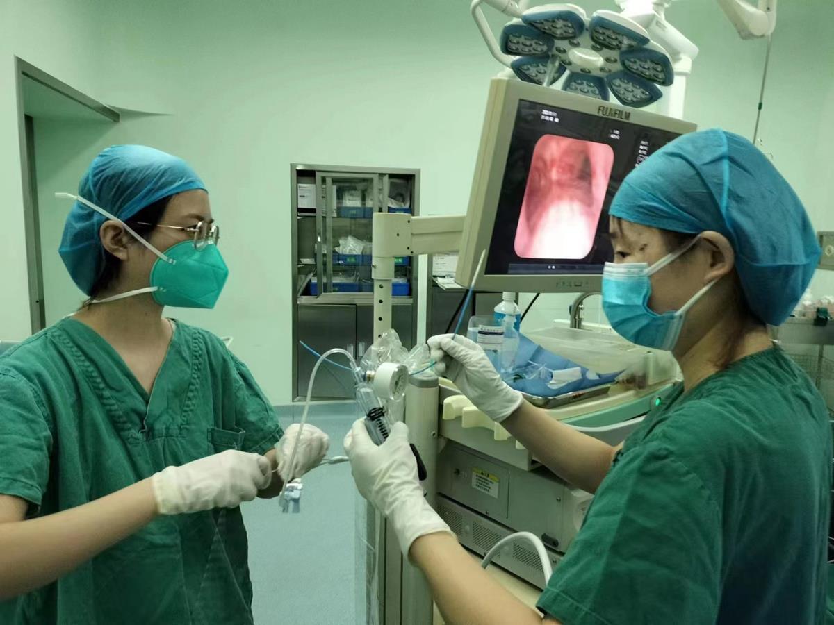 转入医院呼吸内科的第一天,该科主任阮玉姝为赵先生实施电子支气管镜检查。阮玉姝发现,患者右肺下叶支气管嵌顿有一异物。考虑到异物嵌入支气管时间较长,周围肉芽组织包裹紧密,局麻支气管镜下强行取出异物,可能面临大出血、气管穿孔、气管纵膈漏、气管食管漏、窒息等多重风险,阮玉姝在科内组织讨论后,决定联合麻醉科在全麻下对赵先生实施支气管镜异物取出术。