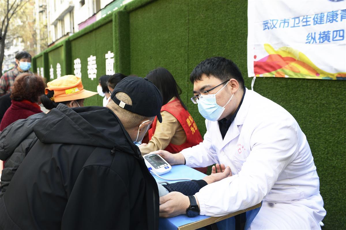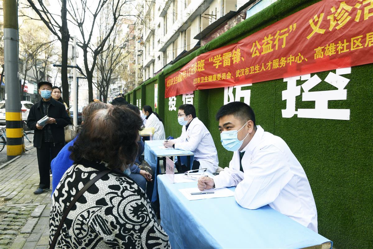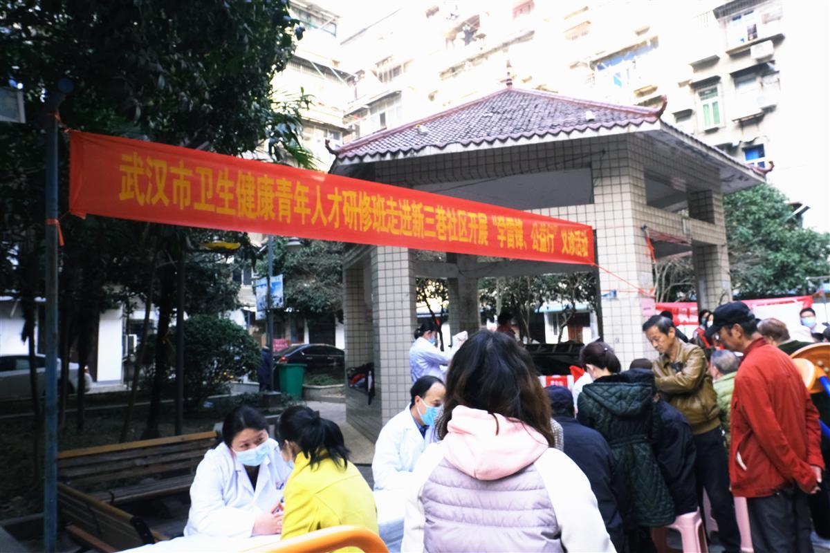 3月5日上午,武汉市卫健委组织武汉市卫生健康青年人才研修班30余名医学博士,走进江岸区西马街高雄社区、新三巷社区,开展“学雷锋、公益行”社区义诊活动。