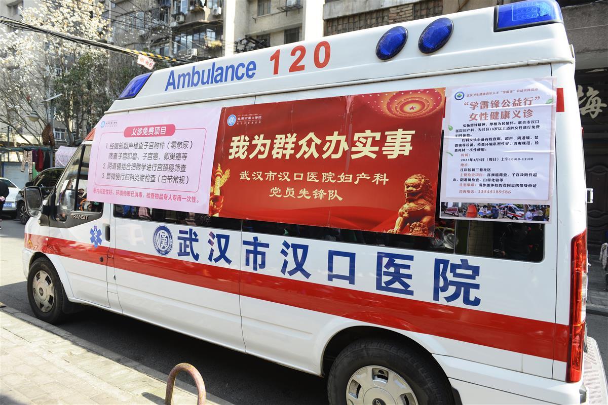 在高雄社区,武汉市中心医院的丁胜和武汉市第四医院的赵晶晶为居民们讲解“糖尿病的有效防治”与“生命在于运动”的骨骼健康讲座。讲座案例生动典型、语言通俗易懂,赢得了社区居民的阵阵掌声。在新三巷社区,武汉市汉口医院妇产科党支部派出专业的妇科义诊车,为社区适龄女性开展“两癌”筛查免费体检。