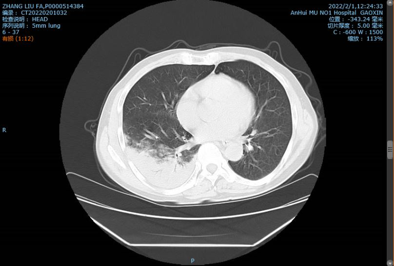 张勇(化名)肺部出现感染。
