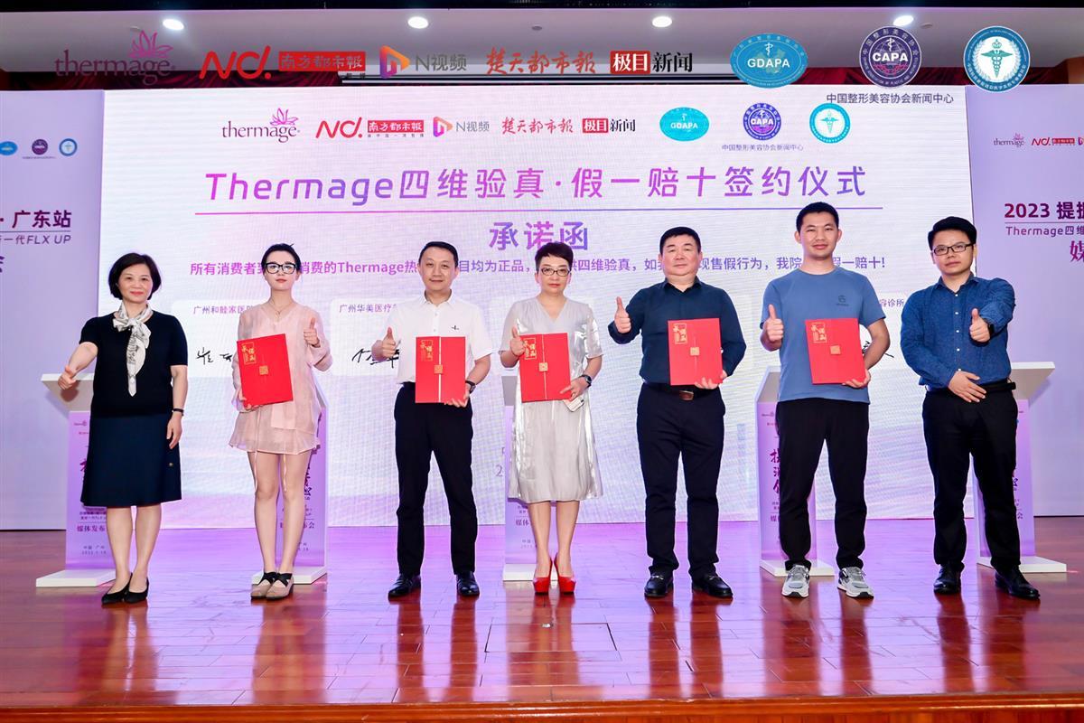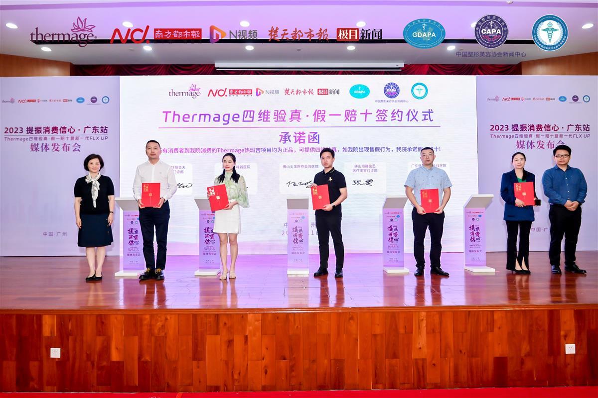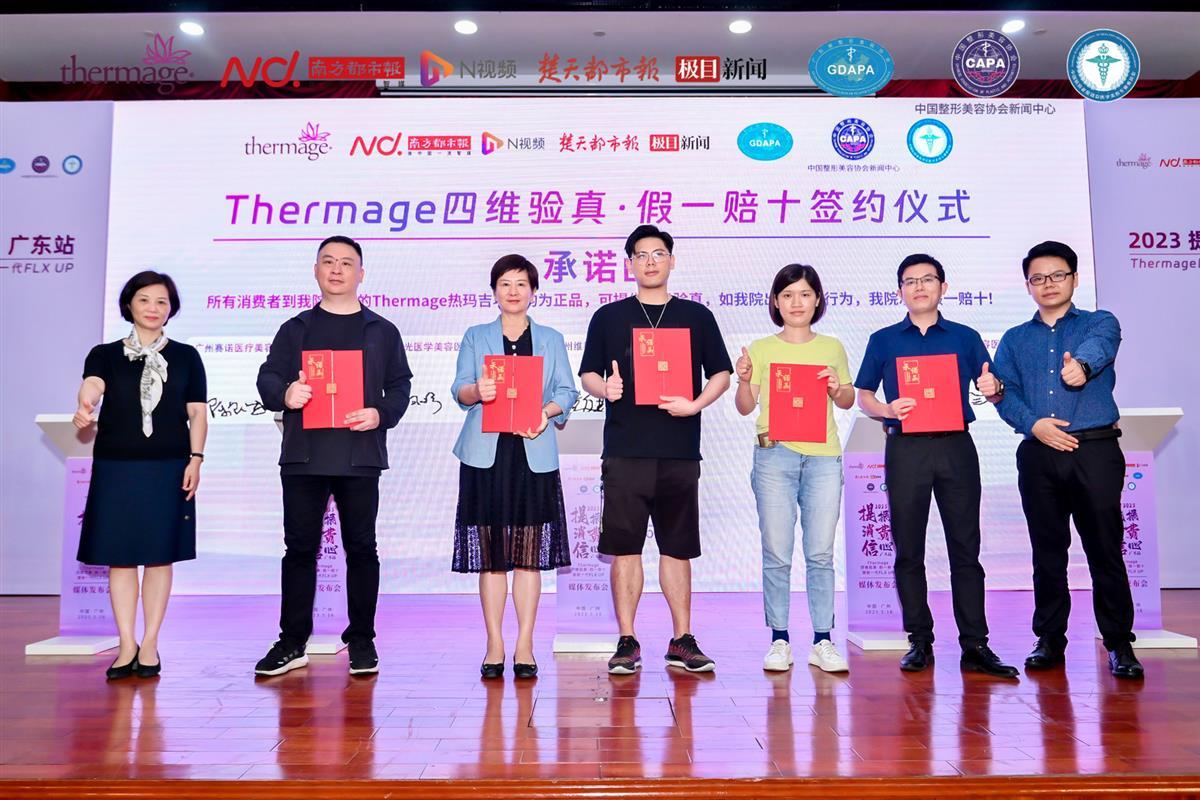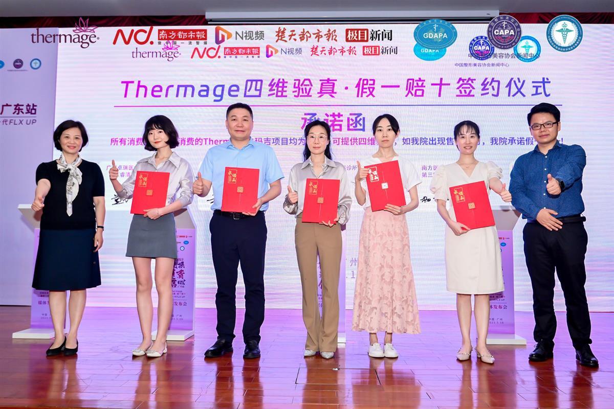 近日,市场监管总局等11部门联合印发《关于进一步加强医疗美容行业监管工作的指导意见》,为当下火热“颜值经济”的升级发展指明了新方向。5月16日,由广东省整形美容协会、中国抗衰老促进会医学美容专业委员会、中国整形美容协会新闻中心、南方都市报、楚天都市报·极目新闻等媒体以及广东省Thermage正品机构联合发起的“2023提振消费信心·广东站-Thermage四维验真·假一赔十暨新一代FLXUP”发布会上,当地的25家医美机构承诺市民消费的热玛吉项目均为正品,若发现有售假行为愿假一赔十,以此提振市场信心,助力美丽经济发展。