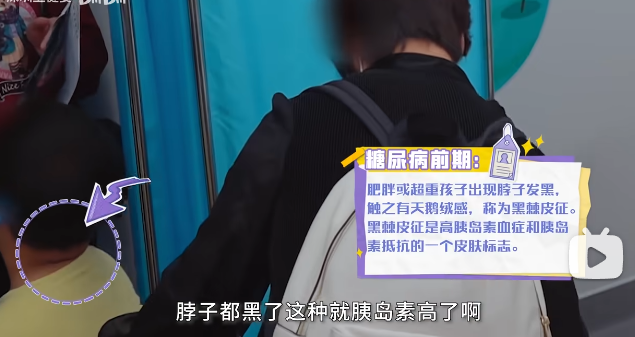 还有一点值得注意,男孩的家长以为孩子脖子后面发黑是被晒的,但医生却表示,脖子后面发黑说明孩子胰岛素偏高,而这是糖尿病前期的表现。