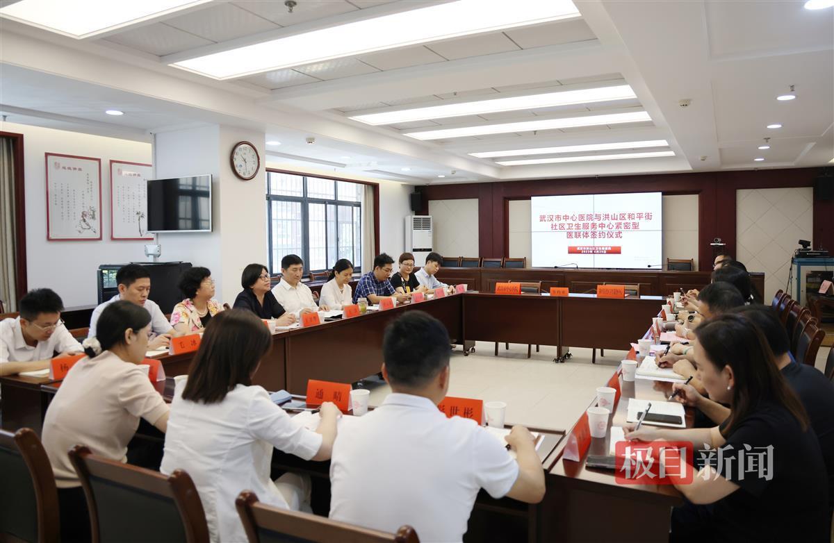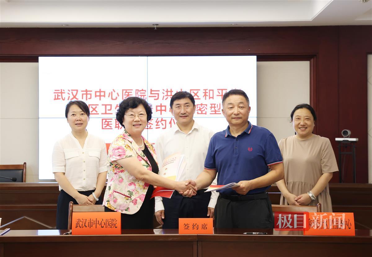 6月28日上午,武汉市中心医院与洪山区和平街社区卫生服务中心紧密型医联体签约仪式在洪山区卫健局举行,这是武汉市中心医院在洪山区首个紧密型医联体。