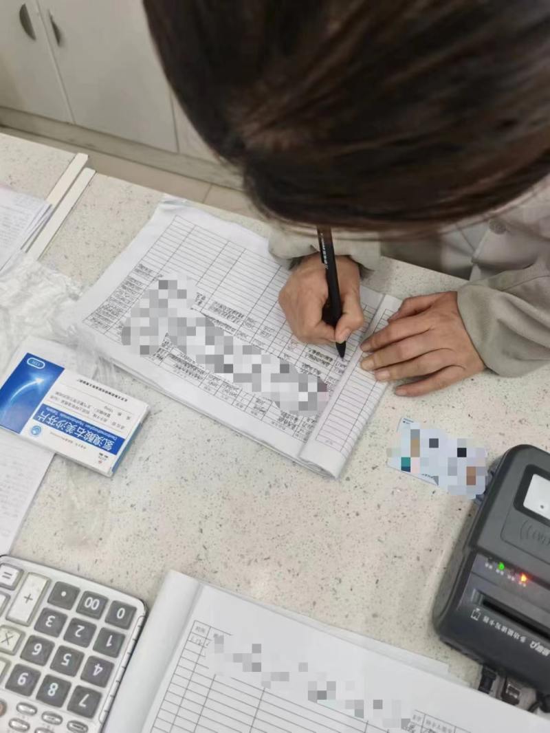 1月中旬,陈锋在山西一家药店尝试购买右美沙芬,店员在台本上登记信息。受访者供图