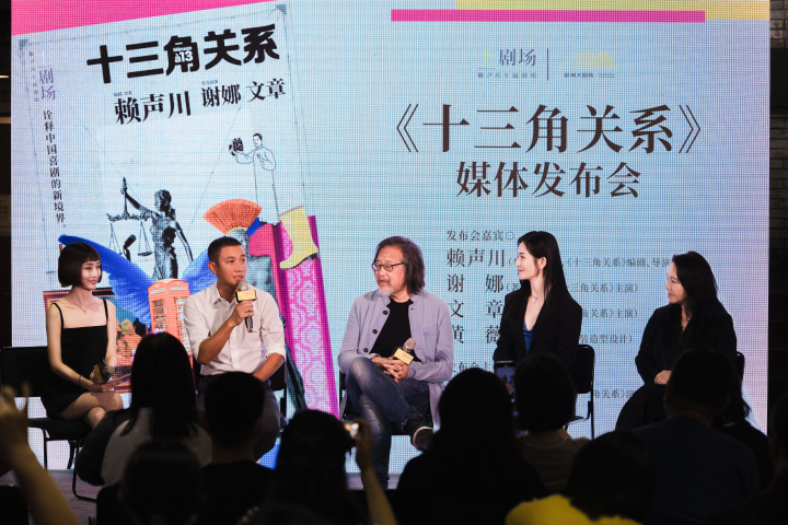 8月31日,《十三角关系》媒体发布会在上剧场举办。华人戏剧家、上剧场艺术总监赖声川,主演谢娜、文章出席,以及服装造型设计黄薇亮相发布会。正逢排练期,《十三角关系》剧组在现场与大家分享了许多创作与排练的故事。