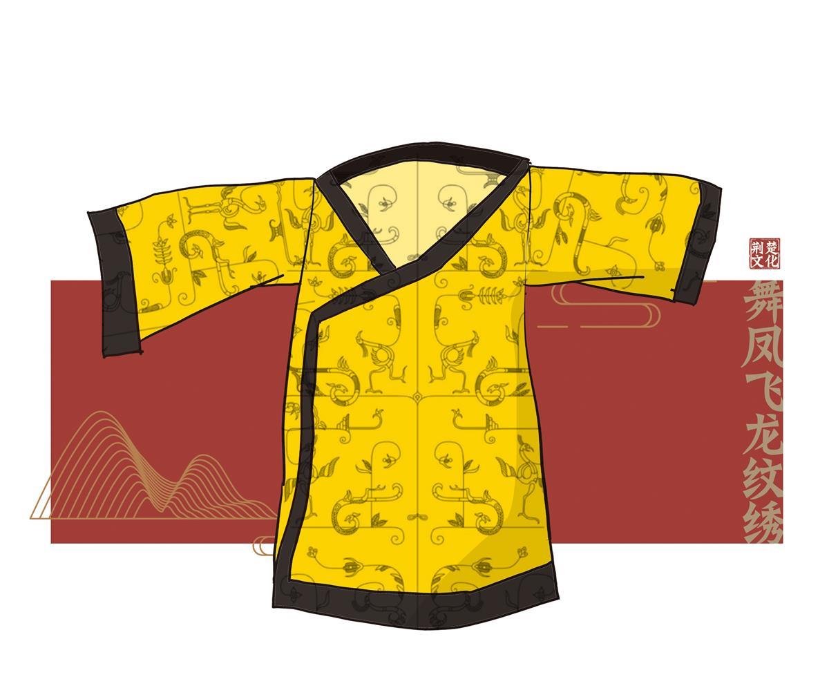 丝绸是中国特有的物质文化代表。湖北、湖南的楚墓均发现有丝织品。湖北江陵马山一号楚墓出土有21件绣品,保存完好,反映了楚国的丝织制造业和服饰文化,被称为“地下丝绸宝库”,这些织物轻薄细密、流光溢彩、柔软如梦(前面的“舞凤飞龙纹绣”纹样复原图,展示的就是江陵马山一号楚墓出土的丝织品上面的纹样)。