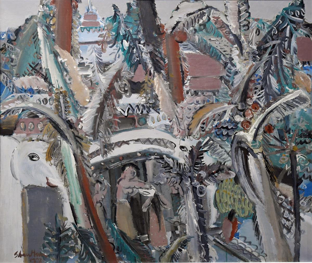 值得一提的是,在2号展厅,还展有本次展览创作年代最久远的作品——方少华于1985年创作的油画《七仙女的传说》。表现主义的手法,抽象的画面,曾让不少人数不全画作中的“七位仙女”,有兴趣的观众不妨前往现场,挑战眼力。