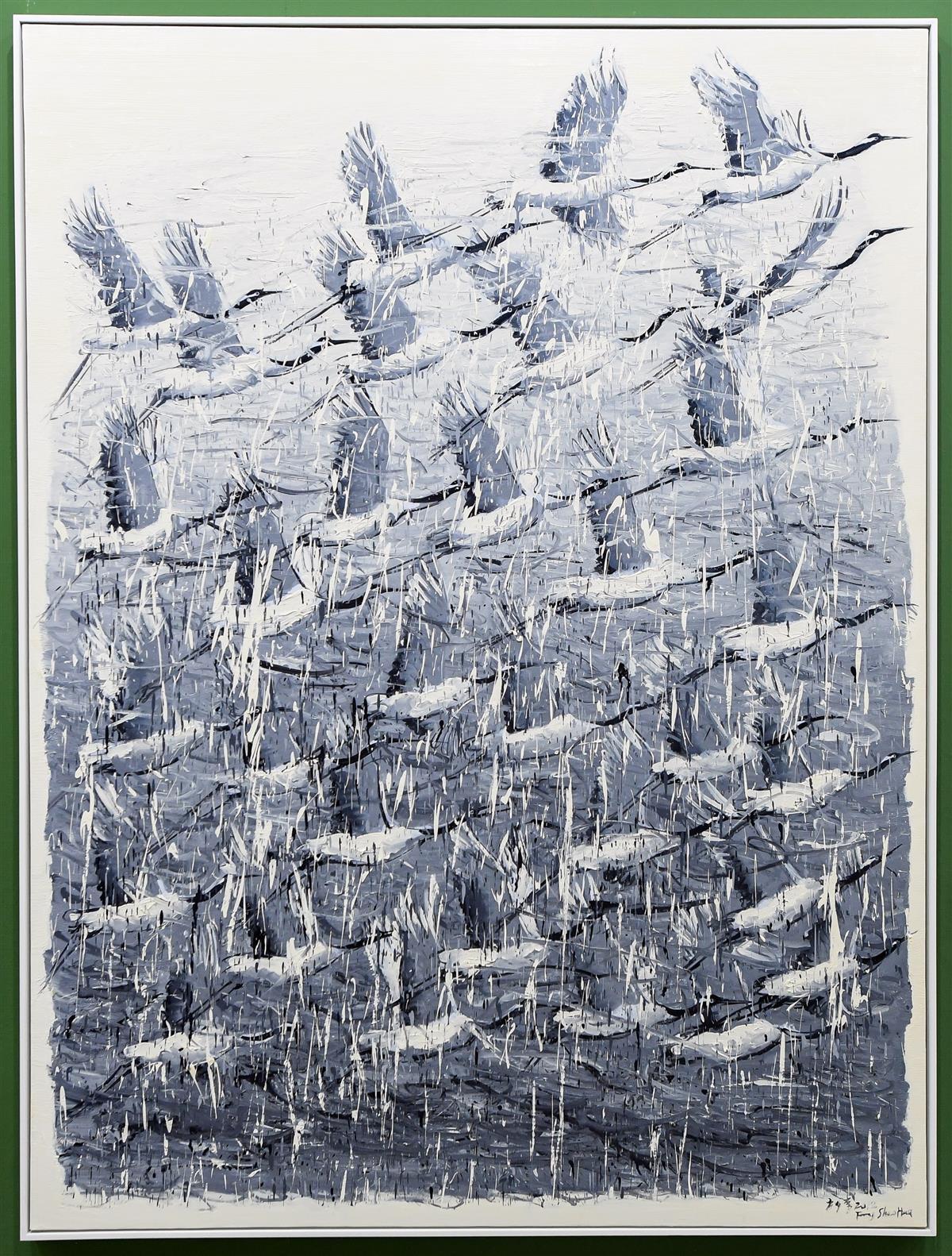 竹之外,鹤亦是中国传统文化元素,不过方少华笔下的鹤,有故乡情。
