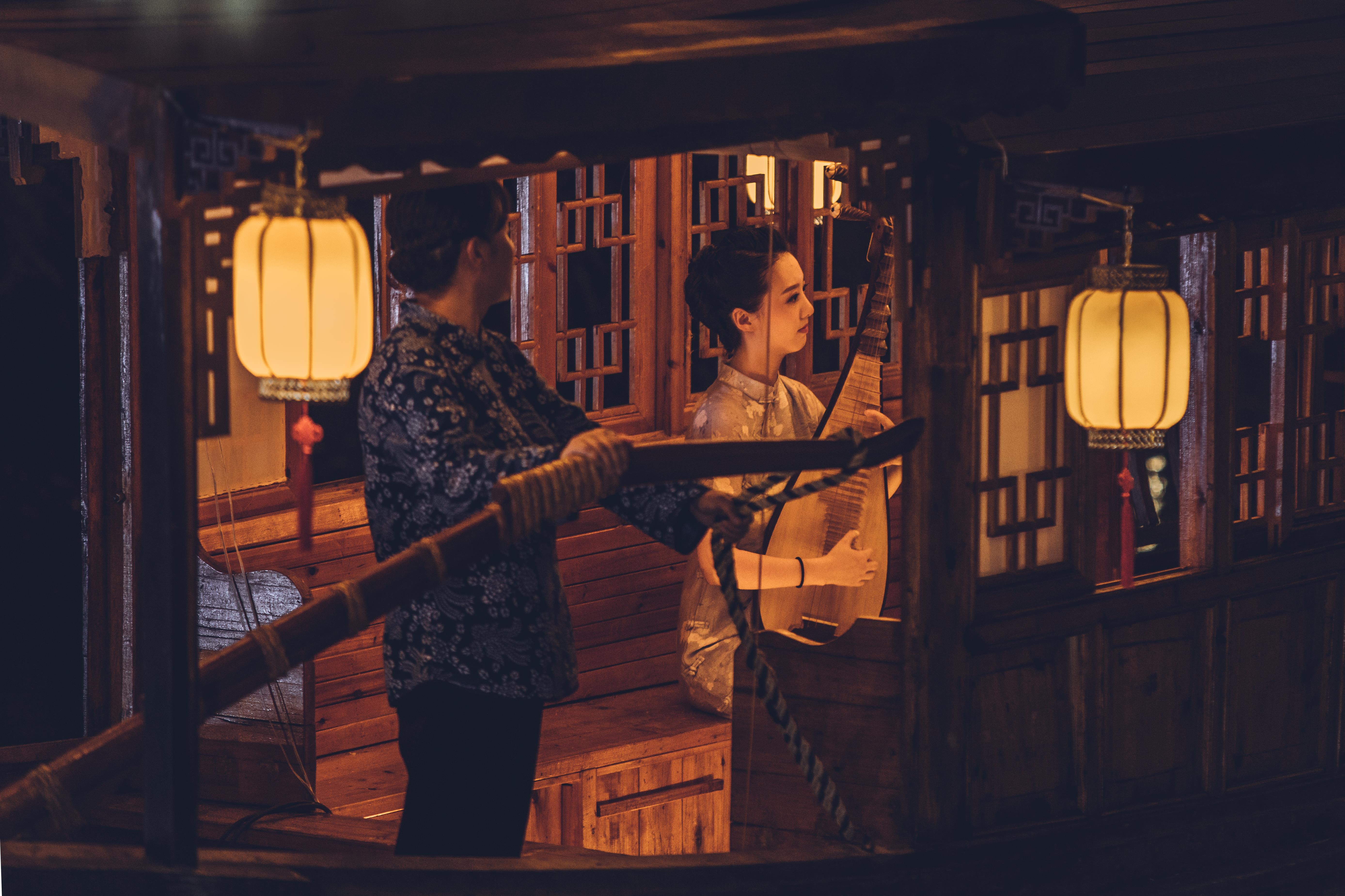 在一曲象征浪漫、圆满的歌曲中,一对“才子佳人”将出现在“秀绝冠江南”的木渎古镇。悠扬的琵琶声响与婉转的戏曲唱腔中,佳人乘一叶扁舟向观众缓缓驶来,游船、桥、廊亭、茶馆、小院等场景依次映入观众眼帘,伴随表演嘉宾的唯美演绎,江南水乡独有的柔情和缠绵尽收眼底。同时,据晚会外拍导演王上楠称,晚会在木渎古镇运用了特殊角度拍摄手法,让观众能更为沉浸地感受这如梦似幻的景致。
