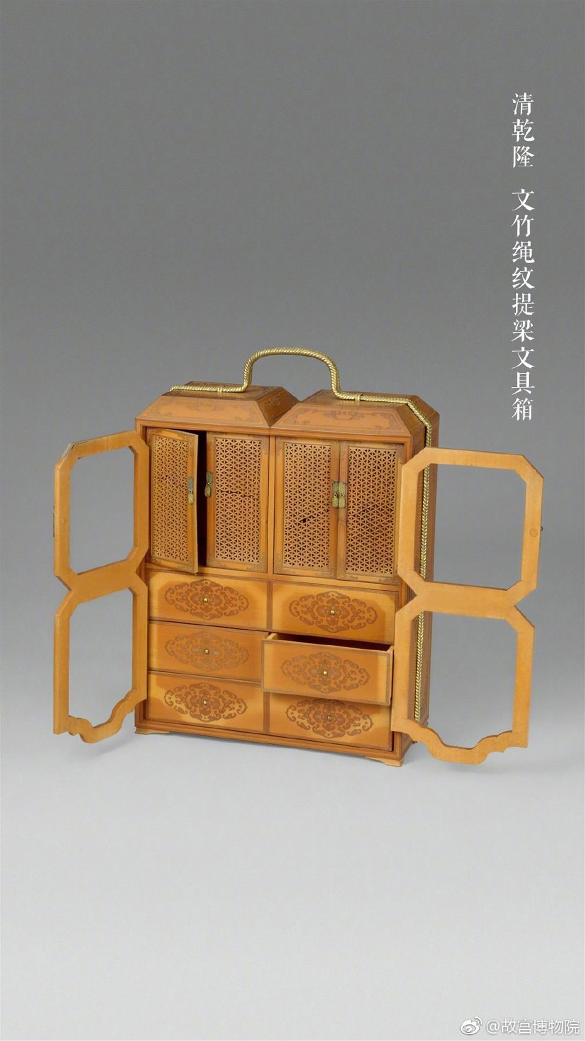 而那些调侃“差生文具多”的朋友,一定要来看看故宫博物院珍藏的各种文具盒、文具盘和文具匣。其中,清代乾隆时期文房器具中的高人气藏品——旅行文具箱,绝对值得细细品鉴。