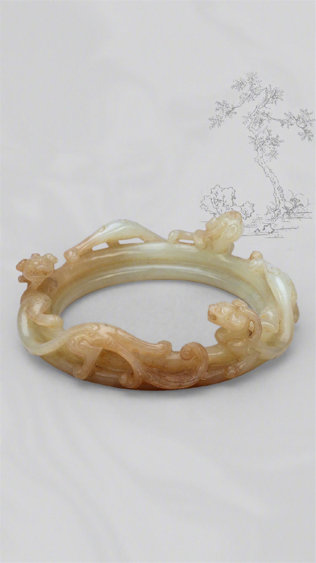 据故宫博物院专家介绍,在清代,皇家对皇子的书法要求很高,所以仿圈是每个皇子写字时必备的学习工具。皇子们写字时将仿圈放置在宣纸上,然后在圈内写字,就可以控制字体的大小,并合理规划字与字之间的布局。借助这个小工具,皇子们从小就能书写工整的书法。故宫博物院珍藏的“青玉三螭纹仿圈”,是非常少见的圆形仿圈,造型精美,尽显高调的奢华。