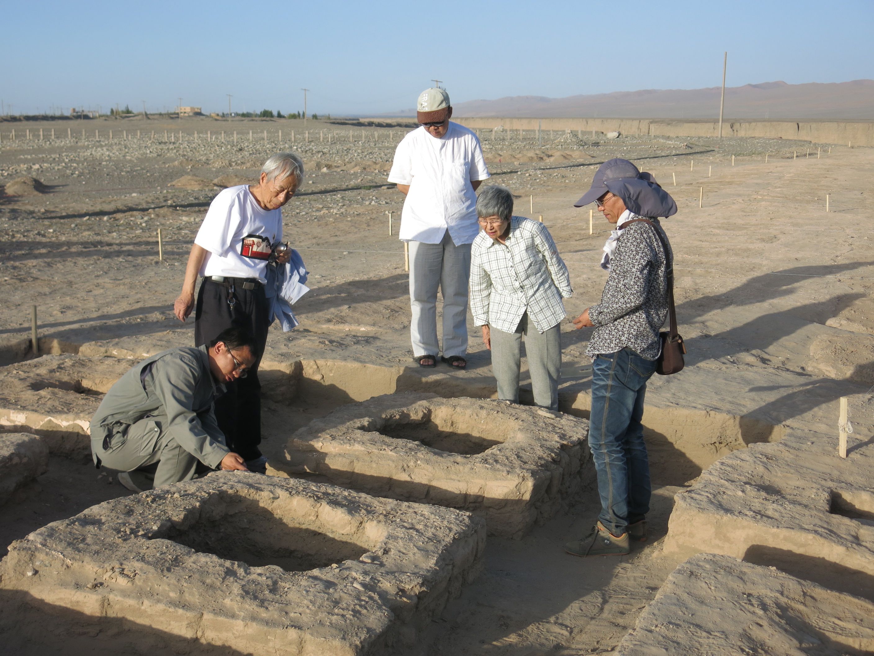2013年8月8日,樊锦诗、彭金章在敦煌西千佛石窟指导崖顶遗迹发掘,左一为张小刚,左二为彭金章,右二为樊锦诗。李元芳摄