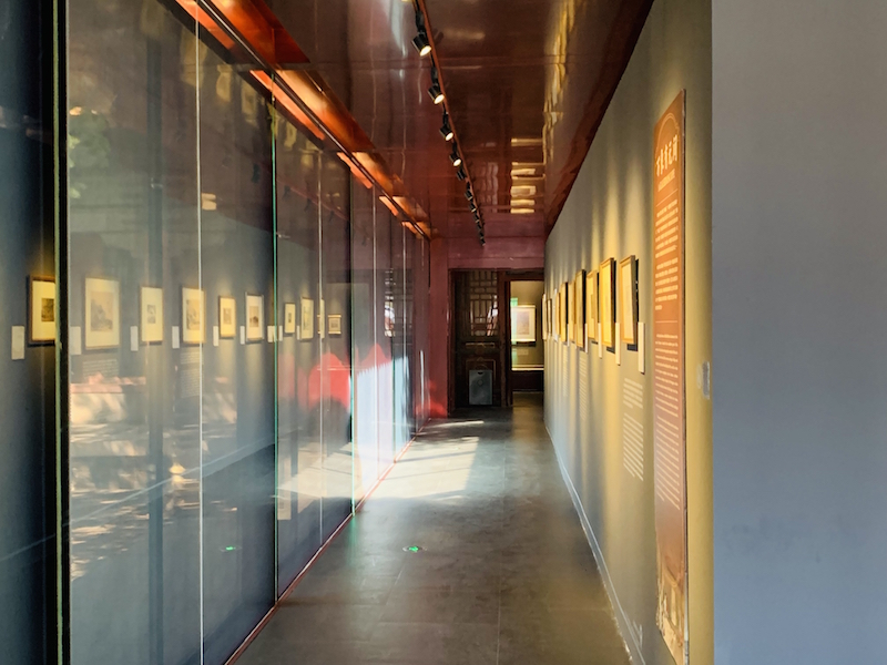 展览呈现在故宫博物院的斋宫,第一进院落的前殿顺着玻璃廊道连接至第二进院落,廊道和大殿内的墙壁上展陈着绘画作品。这些作品为素描、水彩、油画、水墨、版画等,所描绘的内容都是澳门历史图像和著名建筑,串联起不同时期艺术名家在澳门留下的美术足迹。