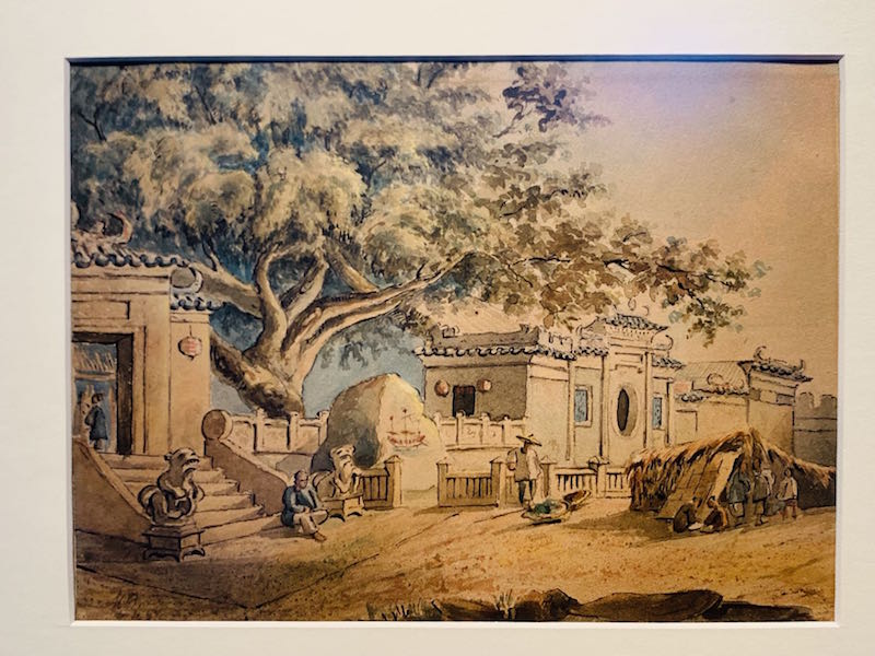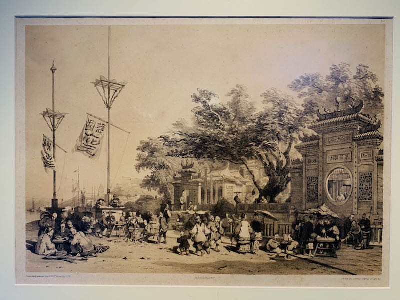 1839年妈祖阁街景,妈祖阁庙在不同的时代都攘来熙往,热闹异常。