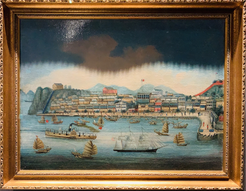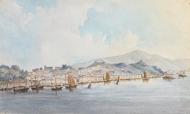 沿海的内港,位于澳门半岛西面,是华人聚居的区域之一。在一幅水彩画作中,海面上除了一艘西式船只外,全是中式船只,澳门若干标志性的建筑物在画中均有所表现。画作右侧可以看到浓荫下的妈祖阁和其附近密集的中式船只;中部是西望洋山(主教山)及其上的教堂,城中最高的建筑物是主教座堂;画作最左茂密树林之处则是白鸽巢公园。尽管岸边房子的表现上比较概念化,但画家在处理海面时对色彩的层次有着良好的把握。