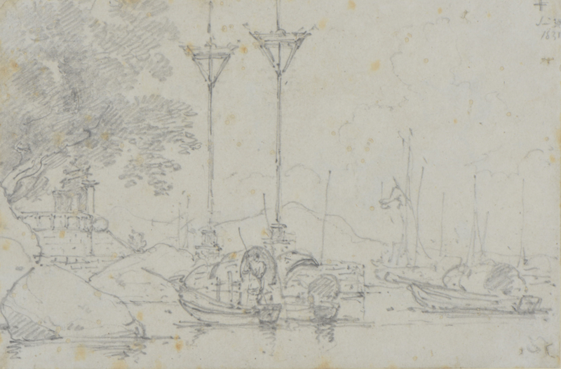 泊近澳门妈祖阁的舢舨乔治·钱纳利绘
