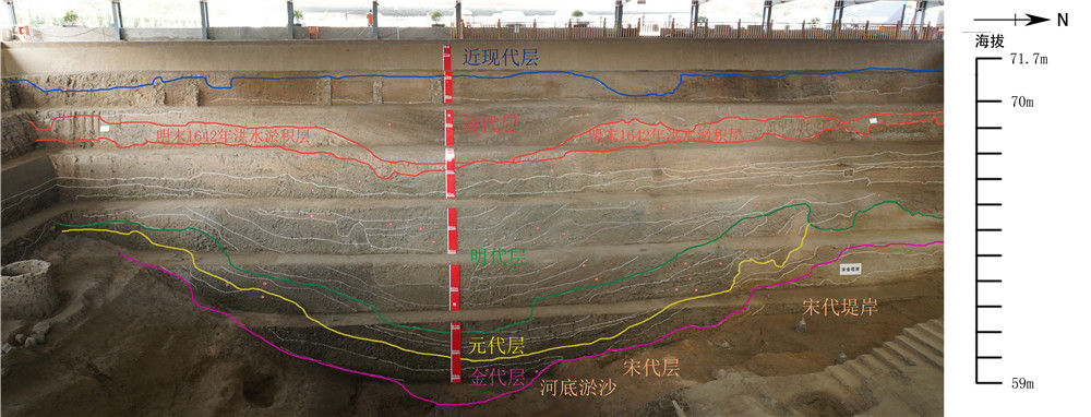 大运河(汴河)河道西壁剖面图,揭示大运河(汴河)自唐宋至清代发展演变过程。