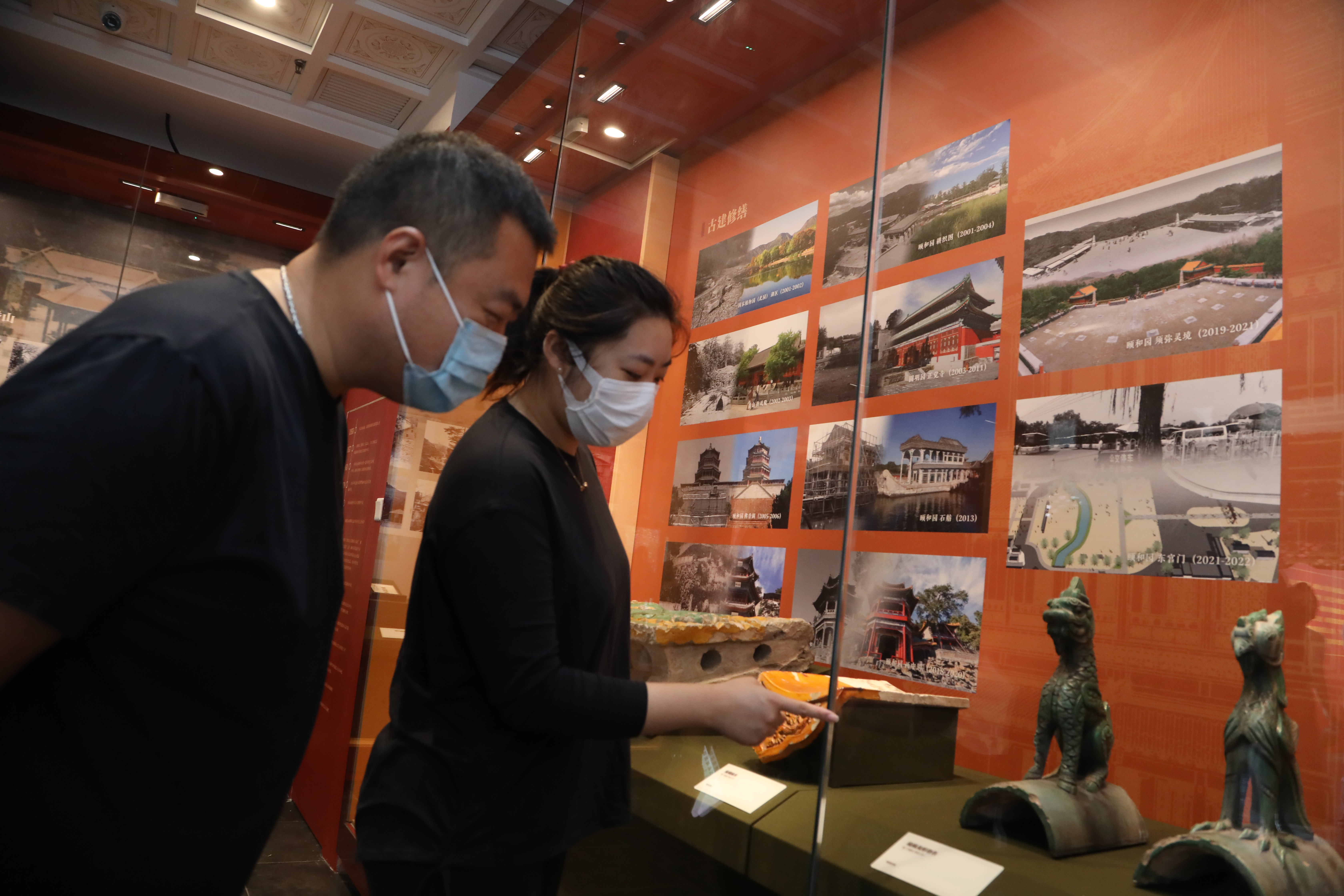 观众在颐和园博物馆观看精品文物专题展“园说Ⅳ——这片山水这片园”。颐和园供图