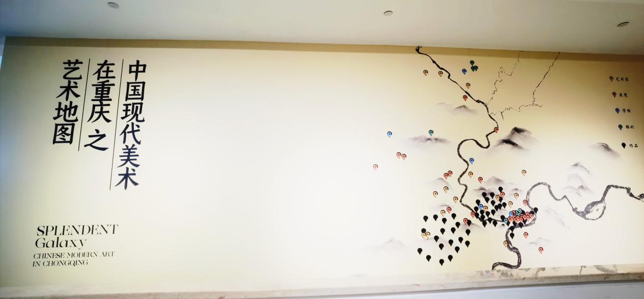 “艺术地图(星星之火):中国现代美术的重庆叙事”板块,则从跨学科的“艺术地理学”视角切入,用新艺术史的研究方法,以重庆地图为蓝本,运用GIS系统,展现美术学校校址、艺术家在渝创作地点、艺术展览举办地点、艺术刊物创刊地、艺术团队的分布与汇集,对历史文献资料进行整合,形成了可视化的艺术地图。