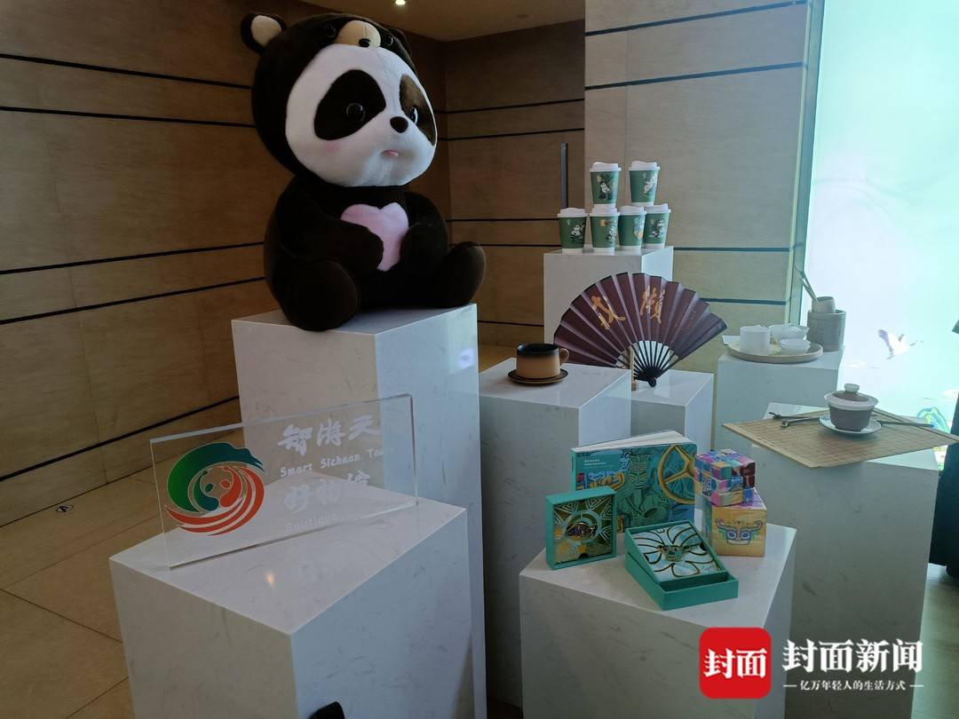 现场,由智游天府打造的“天府好物馆”正在展销的各类文创产品,如田野考古日志手账本、三星堆文创品——蜀趣三阶魔方、三星堆青铜系列立体冰箱贴、三星堆青铜系列徽章等,吸引不少观影者的驻足停留。