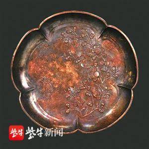 据介绍,另一款汉服则是宋代范儿,灵感来自南京市博物馆馆藏文物南宋镶金口刻梅花纹银盂和月影梅纹银盘都非常有宋代的雅致之美,花瓣形器壁上印有折枝梅,或含苞欲放,或花朵初绽,枝芽相交,姿容妖娆。月影梅纹银盘底纹为一树横斜的梅枝、一弯新月和卷舒的流云,这种纹饰也被称为“梅梢月”,让人联想起“疏影横斜水清浅,暗香浮动月黄昏”的诗句。专家推测,两者实为一套用具,使用时银盂置于银盘之上,银盘起的作用相当于瓷器中的盏托。